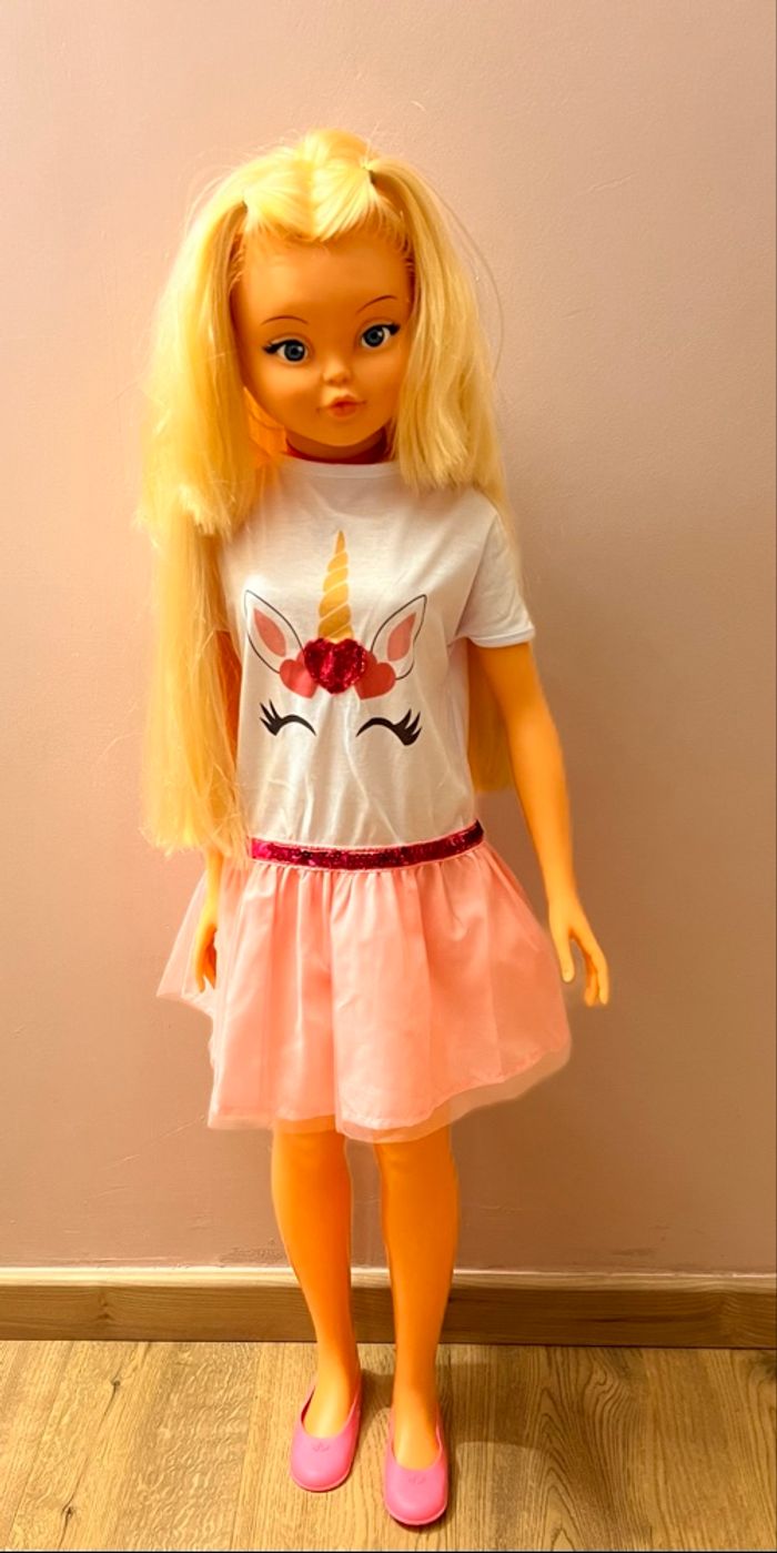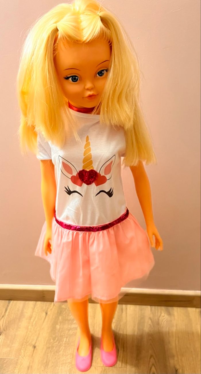 Grande poupée de la marque Falca 100cm de hauteur 2 mèches s’allongent et se rétractent
