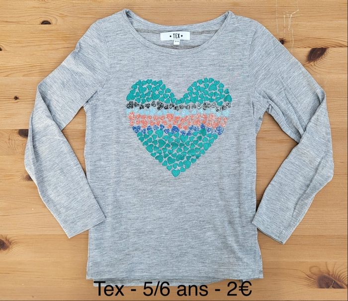 T-shirt manches longues coeur Tex - 5/6 ans Très bon état Regardez mes autres ventes fille 4-6 ans!