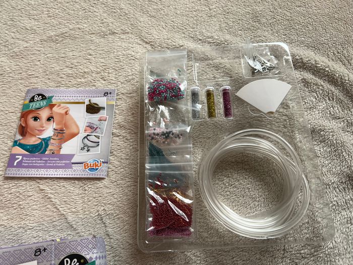 Kit créatif bracelets à paillettes – Buki Be Teens 🎨 Kit créatif Buki – Be Teens pour la réalisation de bracelets à paillettes. (jusqu'à 7 bracelet) Le principe : des tubes transparents à remplir avec les différentes décorations fournies pour créer des bracelets personnalisés. Boite ouvert mais complet (voir photos pour le contenu). Idéal pour les enfants / ados aimant les loisirs créatifs. 👉 N'hésitez pas à regarder mes autres annonces pour grouper vos achats 😉 Une réduction automatique est appliquée pour les lots. Je n'accepte donc pas d'offres supplémentaires sur les articles bénéficiant déjà d'une remise.