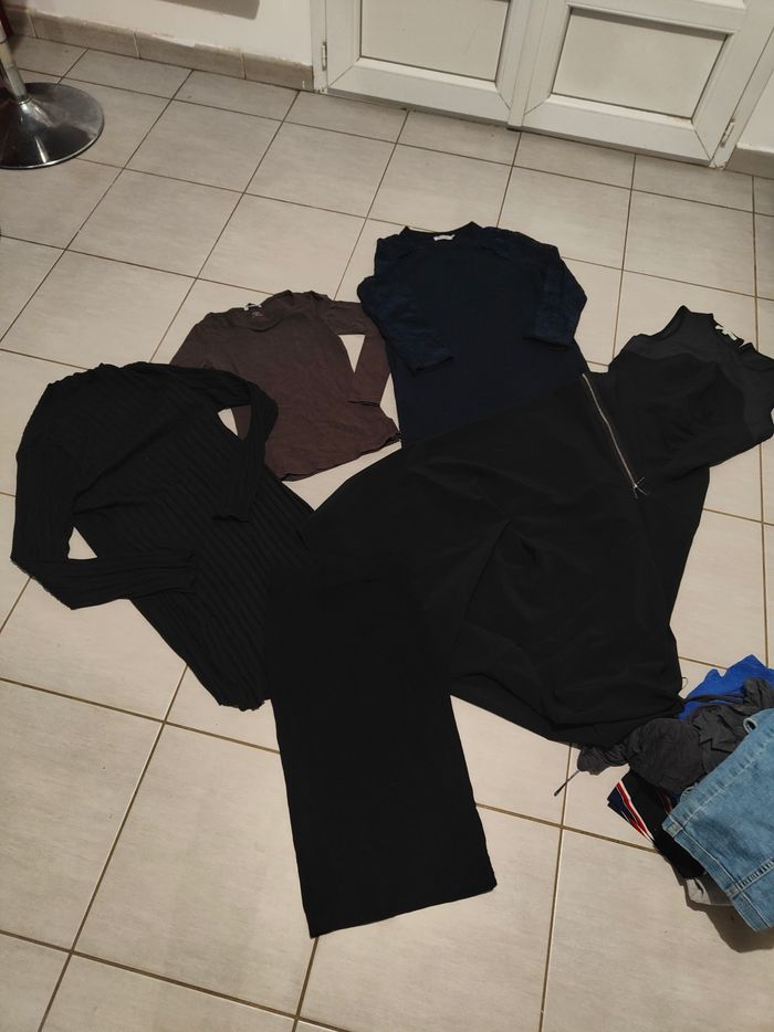 Lot de 17 vêtements femme taille XS s en état satisfaisant pour une robe le reste bon état et tbe soir 0.588€ le vêtements