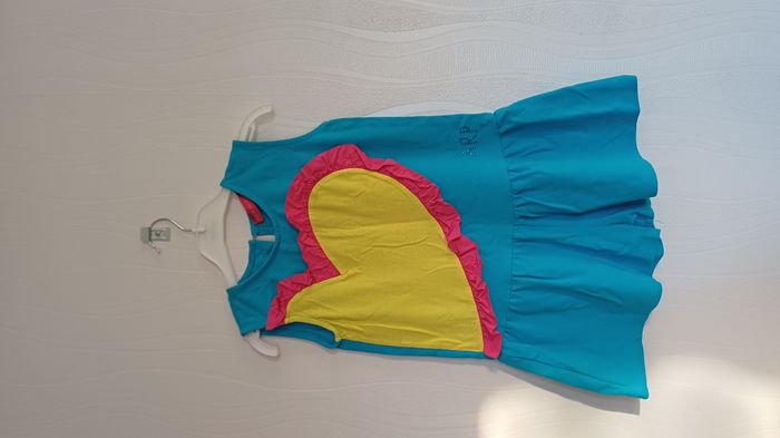 robe short Agatha Ruiz de la Prada, avec motif coeur, fermeture 1 bouton au cou, longueur jusqu'à entrejambes 53 cm