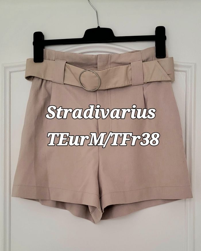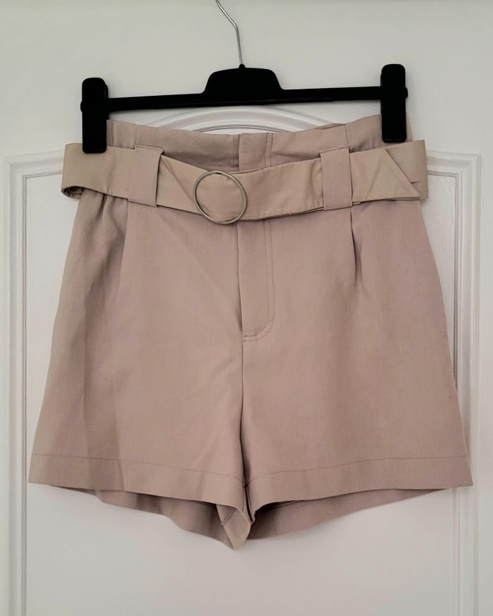 Stradivarius Short Habillé à Pinces TEurM/TFr38-Beige-Taille Elastiquee Froncée+Ceinture simili Cuir - photo numéro 1