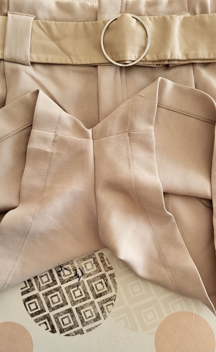Stradivarius Short Habillé à Pinces TEurM/TFr38-Beige-Taille Elastiquee Froncée+Ceinture simili Cuir - photo numéro 9