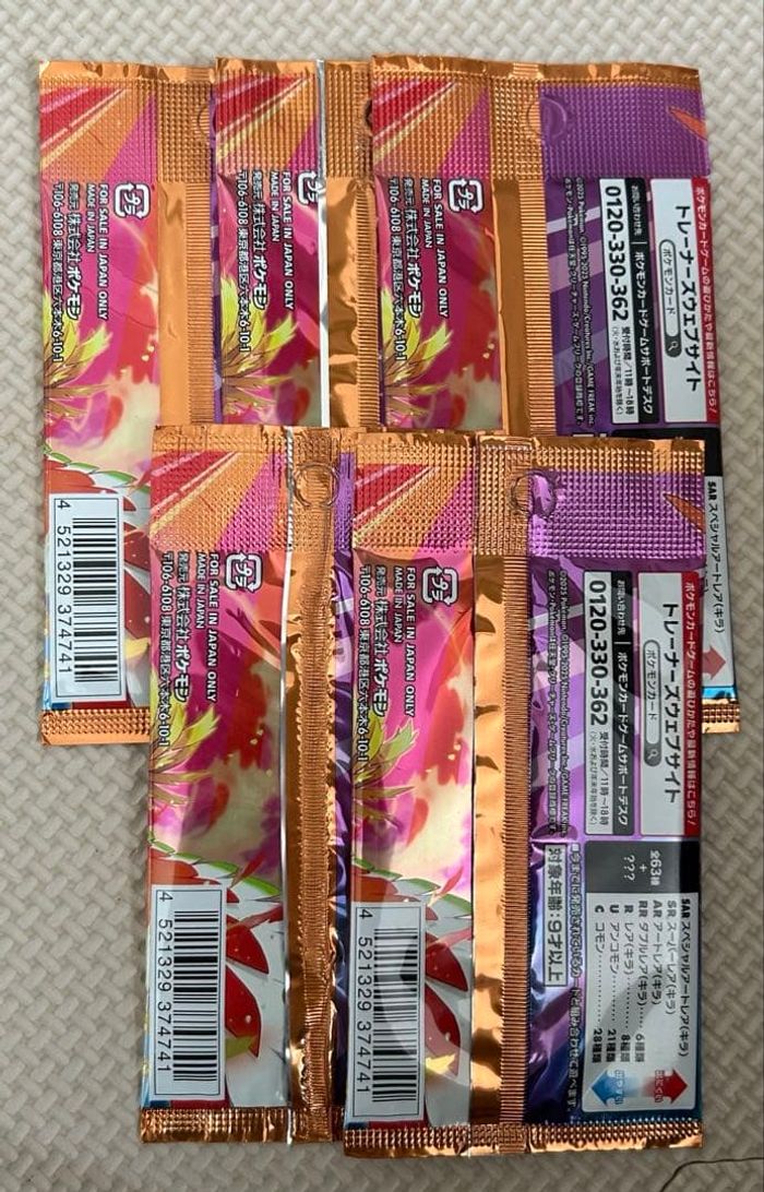 Lot de 5 boosters sv9a (Heat wave arena) neufs japonais. Article neuf authentique et non ouvert.