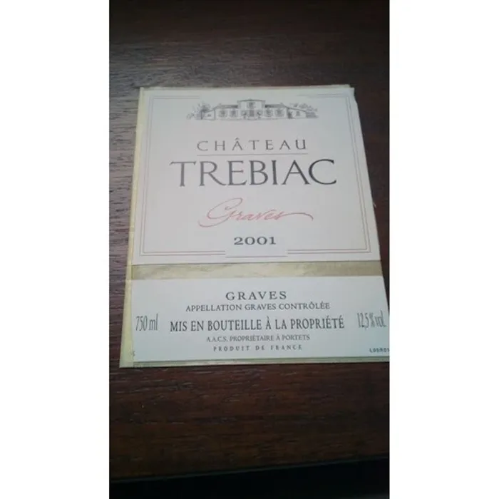 étiquette de vin château trebiac graves 2001 neuve -