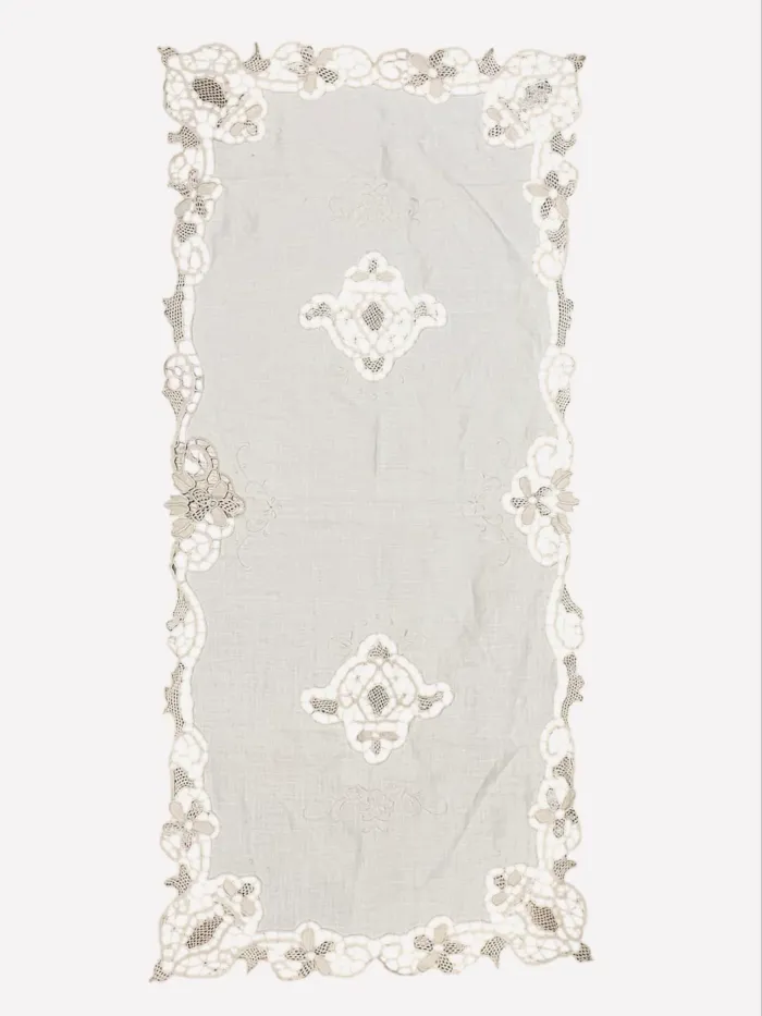 Napperon rectangulaire brodé – Blanc écru – 40 × 85 cm Neuf