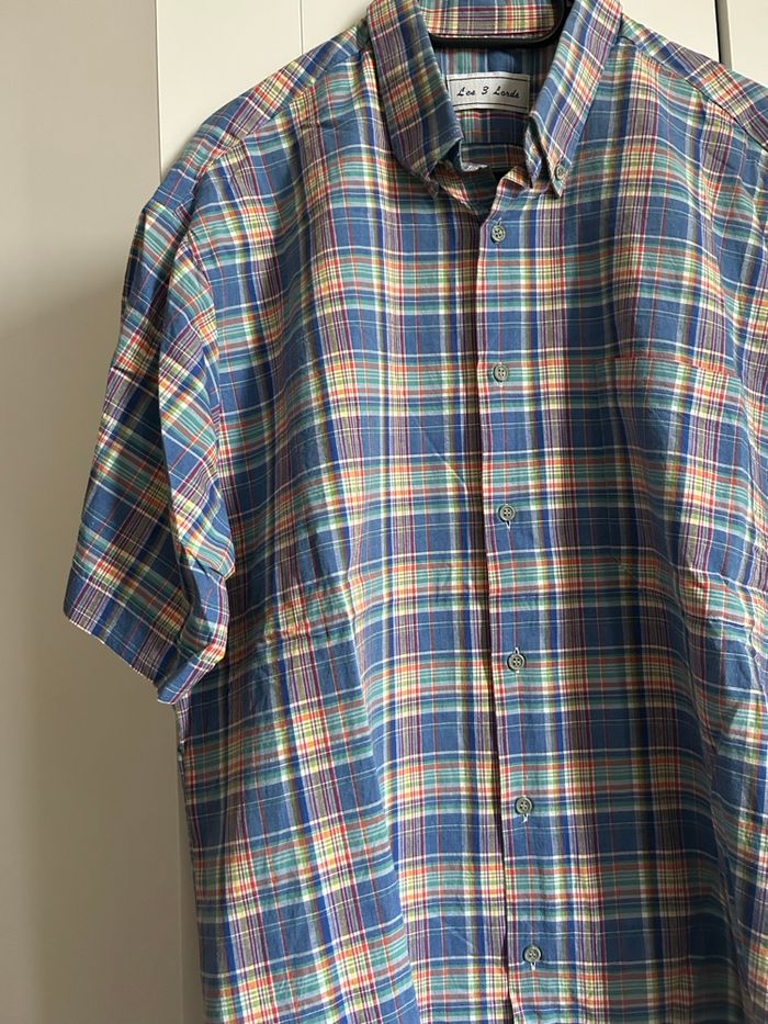 Chemise bleu à carreaux Homme Vintage 1970-1980 Les 3 Lords Tailles L-XL - photo numéro 1