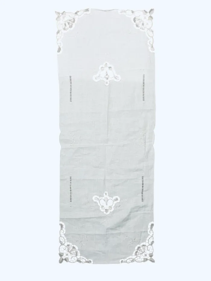 Napperon rectangulaire brodé – Blanc écru – 39 × 101 cm Neuf