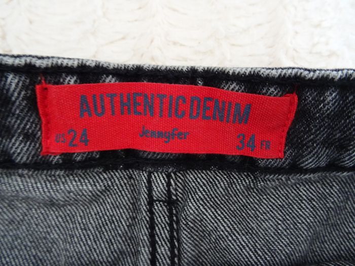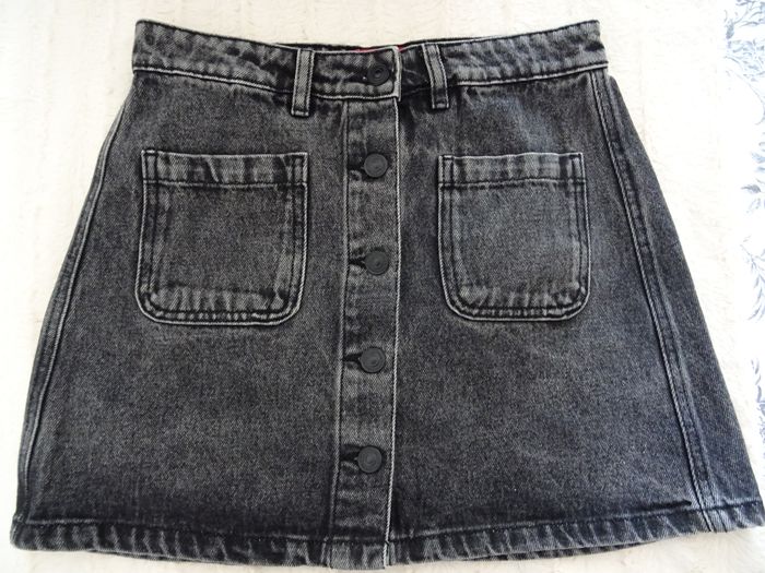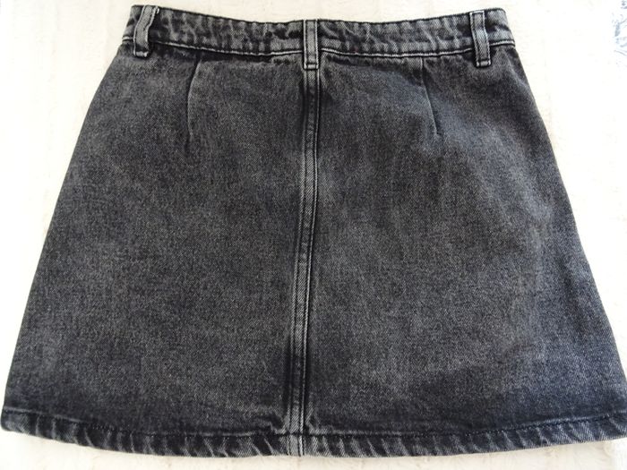 Mini jupe en jean noire délavée Jennyfer taille 34 2 poches Boutonnière devant taille à plat 35 cm, longueur 35 cm