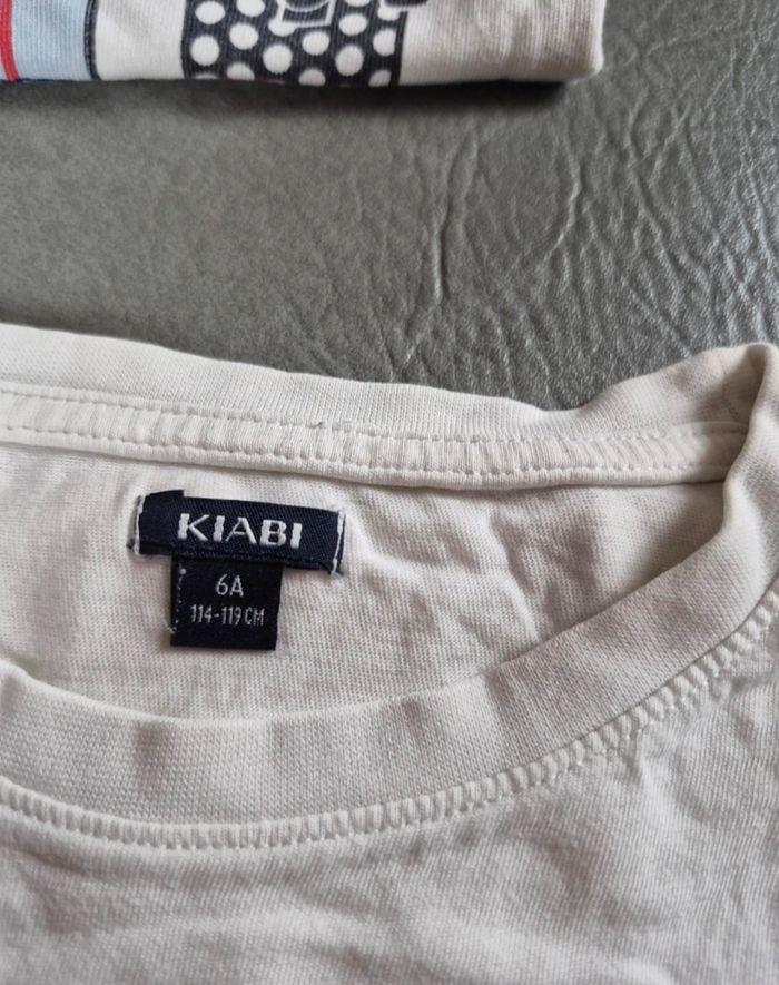 Description : • Marque : Kiabi • Taille : 6 ans • Coloris : Multicolores • Matière : Coton • Détail : Très bon état 📏 Dimensions visibles sur les photos 📦 Envoi rapide sous 24/48h ☺️ Réductions automatiques dès 2 articles 💚 D’autres vêtements disponibles sur mon profil ! A60
