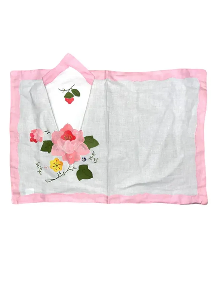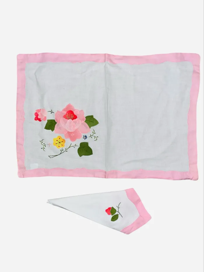 Set de table + serviette assortie – Rose vintage motif fleur brodé Neuf