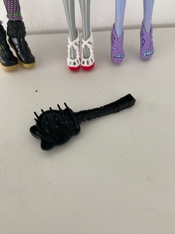 Je vends ce lot de 3 poupées Monster High originales en bon état général. Idéal pour compléter une collection ou pour offrir. Le lot comprend : • Clawdeen Wolf : Tenue complète avec sa combinaison léopard mauve/vert, sa veste à fourrure noire et ses bottines compensées. À noter : détail "maquillage léopard" sur l’œil droit et flocage sur le côté du crâne. • Ghoulia Yelps : Version avec cheveux bleus volumineux, haut brillant bleu et rouge, jupe à motifs et chaussures blanches/rouges. • Abbey Bominable : Peau pailletée, robe noire à motifs cœurs roses, longs cheveux blonds/multi-couleurs tressés et chaussures compensées mauves travaillées. Accessoire inclus : • 1 brosse noire emblématique en forme de crâne Monster High. État : Les poupées ont été exposées et manipulées avec soin. Les articulations sont fonctionnelles. Les cheveux sont propres mais peuvent nécessiter un léger coiffage selon vos préférences. (Regardez bien les photos pour le détail des tenues et des visages). Détails supplémentaires : • 📦 Envoi rapide et emballage soigné (papier bulle). • 🏠 Maison non-fumeur. • 💰 Prix pour le lot : 40€ (Possibilité de vente à l'unité sur demande). A 13,35€ l’unité