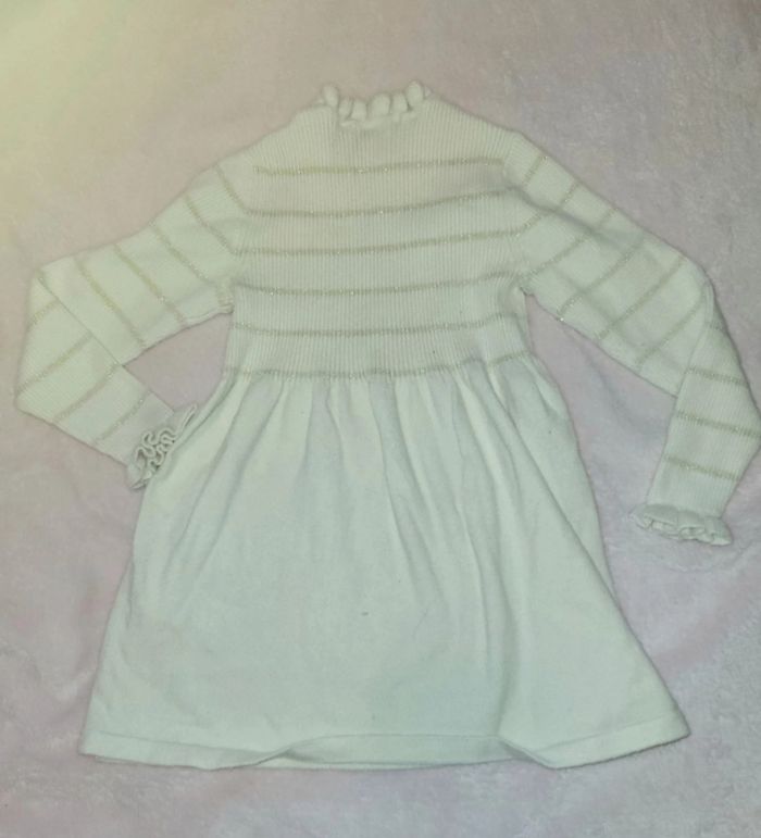 Robe en maille Robe courte Manches longue Blanche à rayures doré Taille 4 ans (98-107cm) Un peu délavé mais reste en très bon état ( pas de tâches pas de trous)
