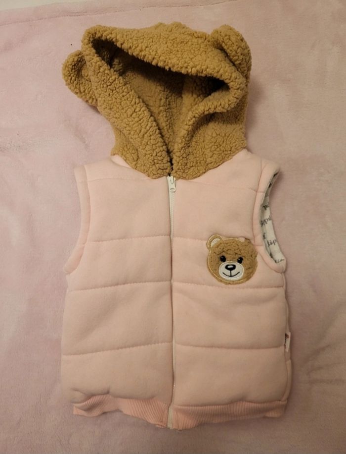 Veste à capuche sans manche Veste a fermeture Capuche à petites oreilles d'oursons Taille 24-36 mois (étiquette coupé) En très bon état (pas de tâches pas de trous)