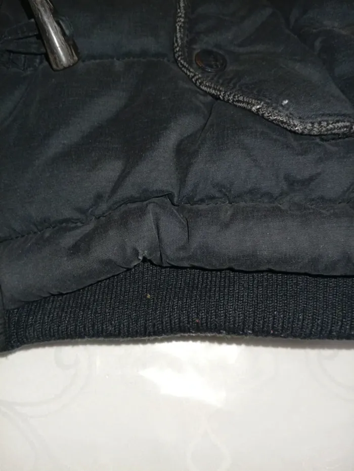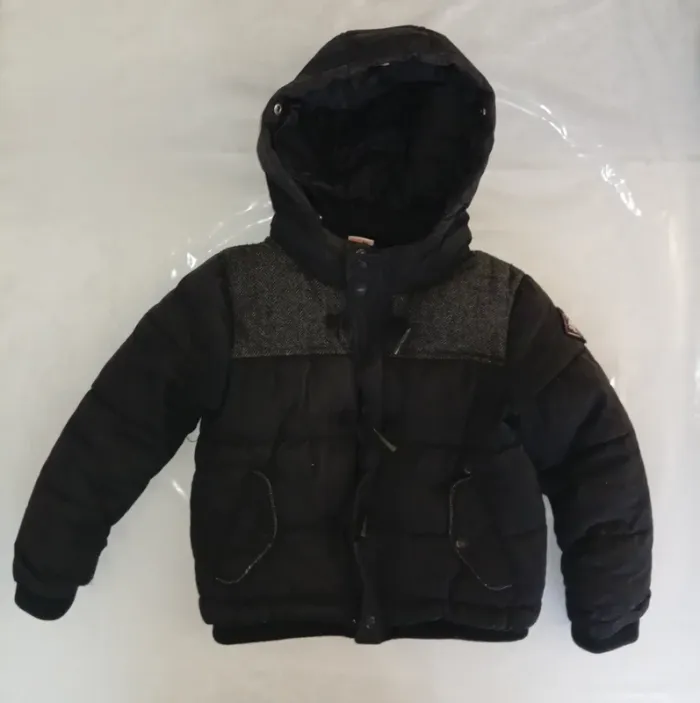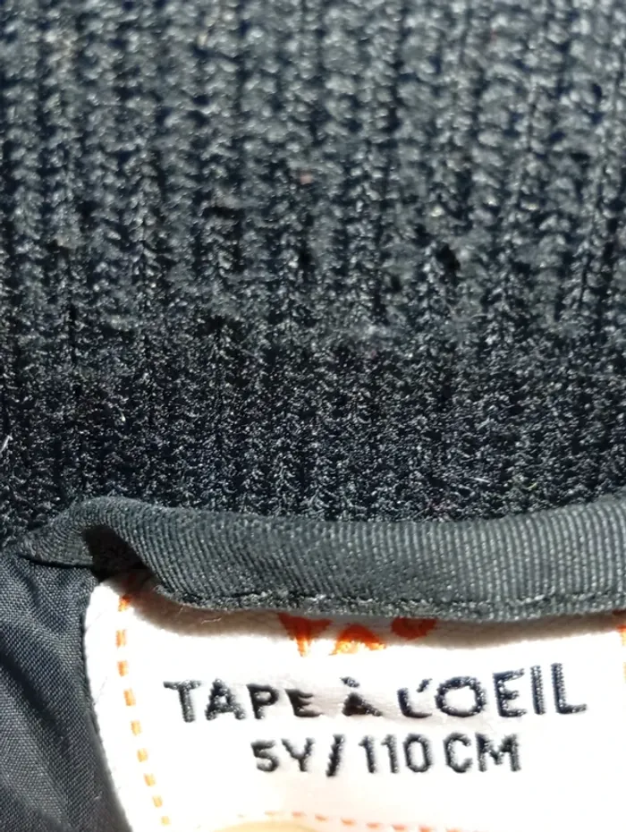 doudoune taille 5 ans Tape à L'œil, accros au dessus de la poche gauche voir photo, et vers le bas de la doudoune . reste en bon état général .