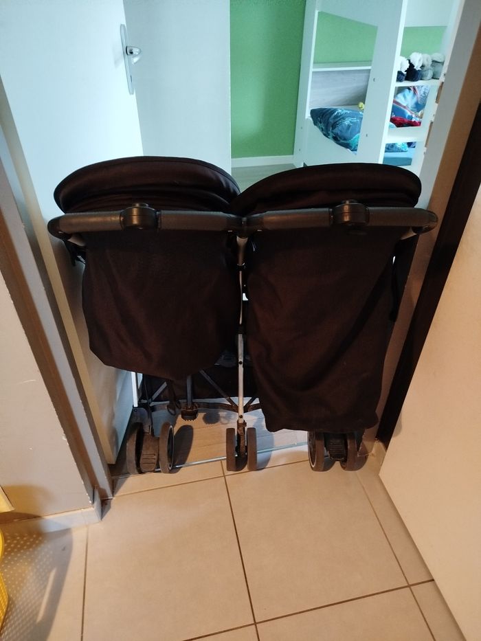 Poussette double Kuki twin baby monster Très compact, légère, maniable Facile d'utilisation Passe les PORTES ainsi que les CAISSES DE MAGASIN. Position assise, semi allongé, allongé Inclinaison des dossiers séparés Panier en dessous La capote descend très bas pour une longue protection. Très bon état général Parfait pour jumeaux ou age rapproché Valeur neuve 400€