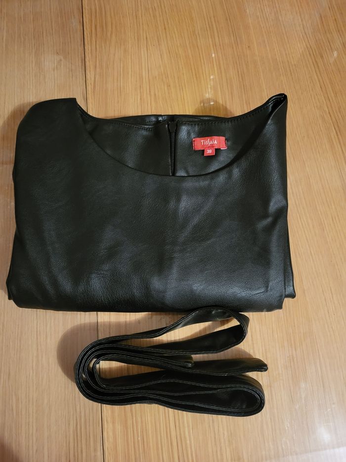 Robe comme neuve,en simili cuir avec lien pour faire jolie et fermeture zip à l'AR