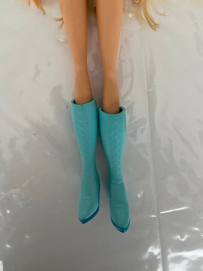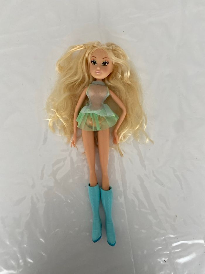 État : Bon état général (voir détails ci-dessous) Je vends cette poupée Stella de la célèbre série Winx Club. Idéal pour compléter une collection ou pour offrir à un enfant fan de l'univers des fées. Détails du produit : • Personnage : Stella, fée de la Lune et du Soleil. • Tenue : Elle porte une robe vert menthe/irisée avec un jupon en tulle et ses bottes montantes bleues d'origine (avec motifs en losanges). • Cheveux : Longue chevelure blonde, légèrement ondulée. Ils ont été brossés mais gardent un bel éclat. • Visage : Maquillage impeccable avec des tons orangés et jaunes rappelant ses pouvoirs solaires. À noter : • La poupée est propre et a été conservée avec soin. • Les articulations fonctionnent normalement. • Regardez bien toutes les photos pour voir les détails de la tenue et l'état des cheveux.