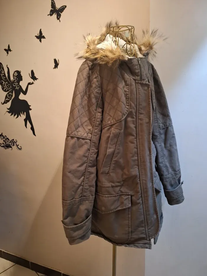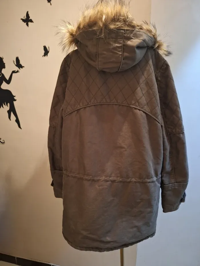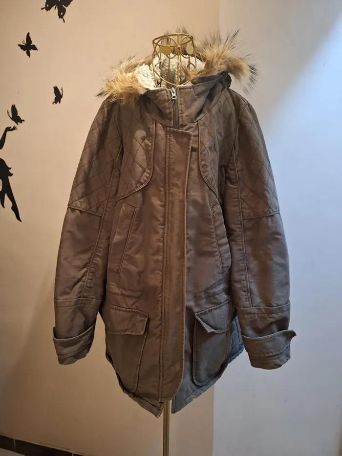 Parka marron doublé en sherpa - doublure matelassé noire - capuche fourrure synthétique - lien coulissant intérieur vous permettant de cintrer ou de porter en coupe droite - fermeture zippée et fermeture pression - longueur 72 cm - dessus 100% coton - taille L correspondant à une taille 40 ps : je ne fais pas de photo portée #parka #parkamarron #parkasherpa #manteau #manteaumarron