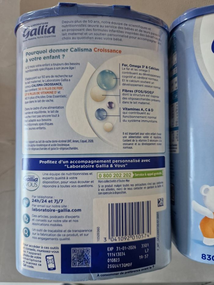 Lait Gallia Calisma, 3ème âge, boîte neuve. ATTENTION date de péremption 31 janvier 2026. 7E la boîte, 12E les 2 ou 20E les 4