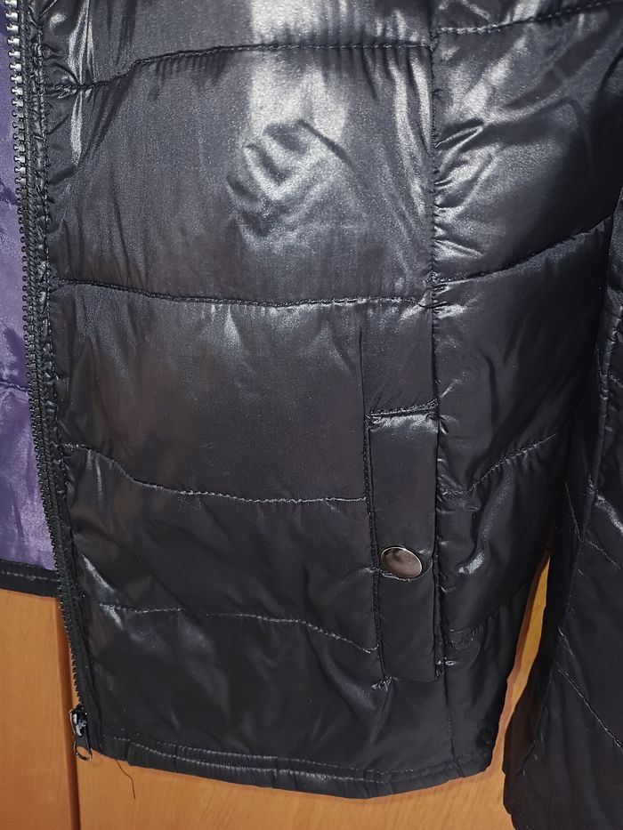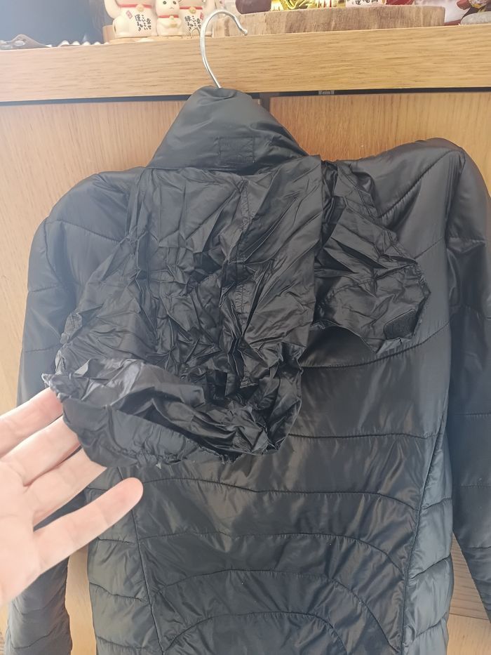 Doudoune légère, avec capuche cachée. Poches extérieures et intérieures.