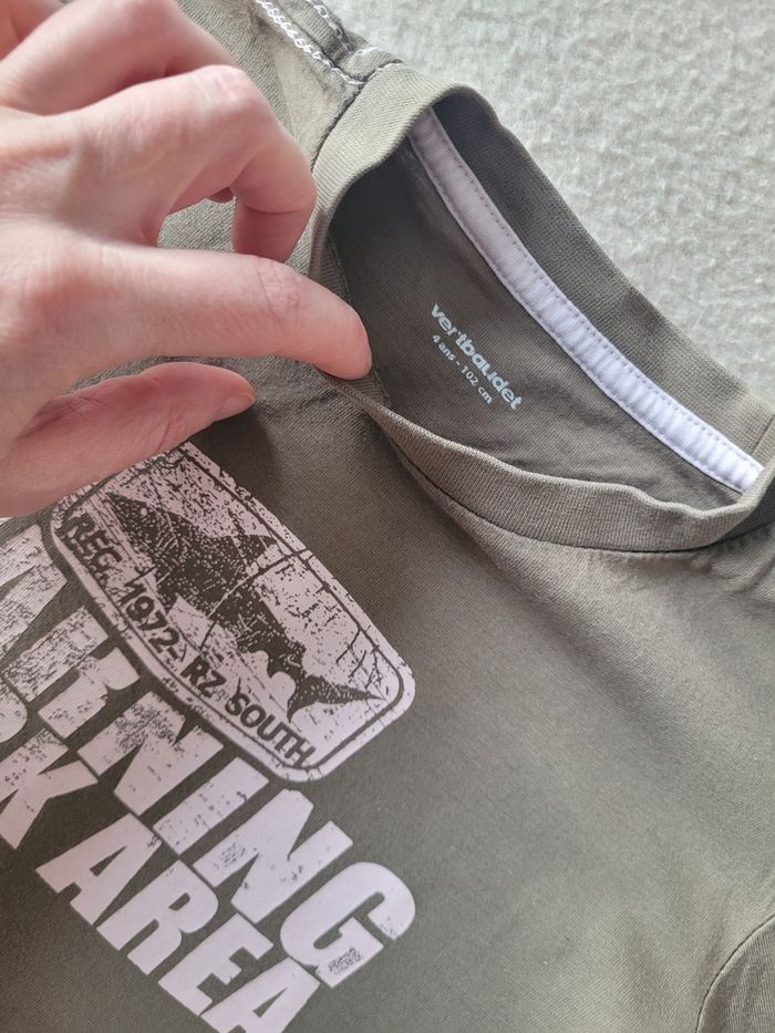 T-shirt vertbaudet 4 ans Couleur kaki En bon état, bout d'une manche légèrement décoloré
