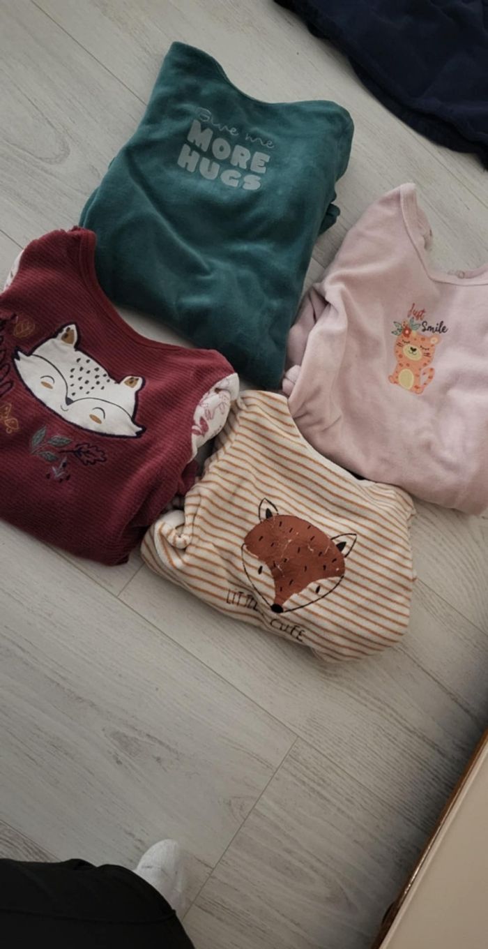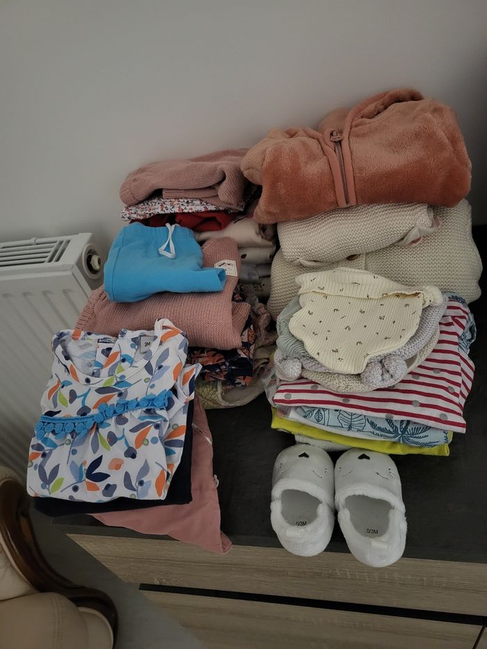 Je vends plusieurs vêtements 3 , 6, 9 mois Body pyjama veste en jean gigoteuse robes short pull leggings.. Demander moi les prix ci intéressé