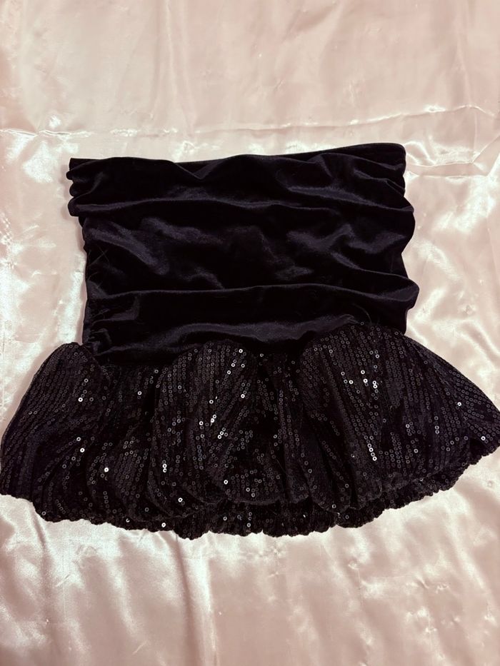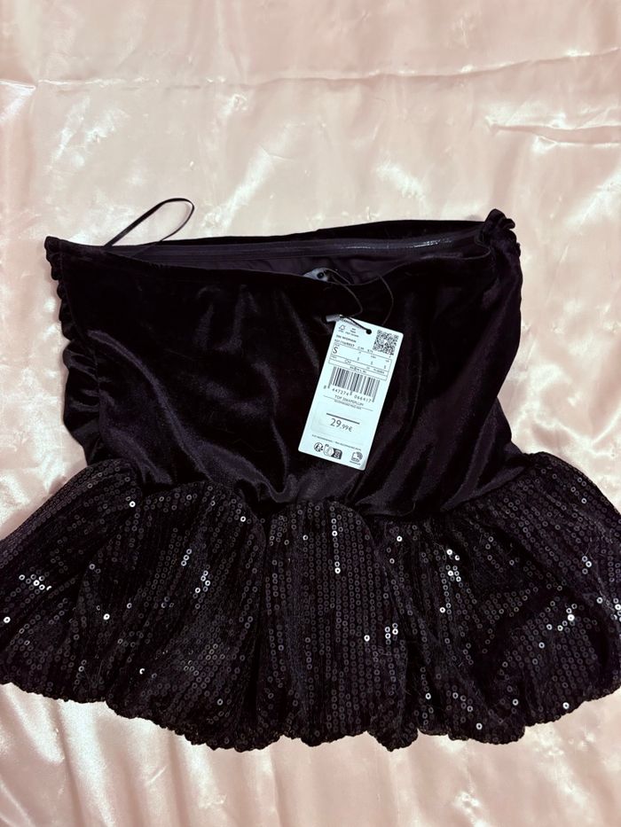 Je vend cet incroyable bustier matière velours , effet bombé à paillettes. ✨ idéal pour les fêtes , occasions , peut s’adapter à n’importe quelle tenue. Neuf avec étiquette