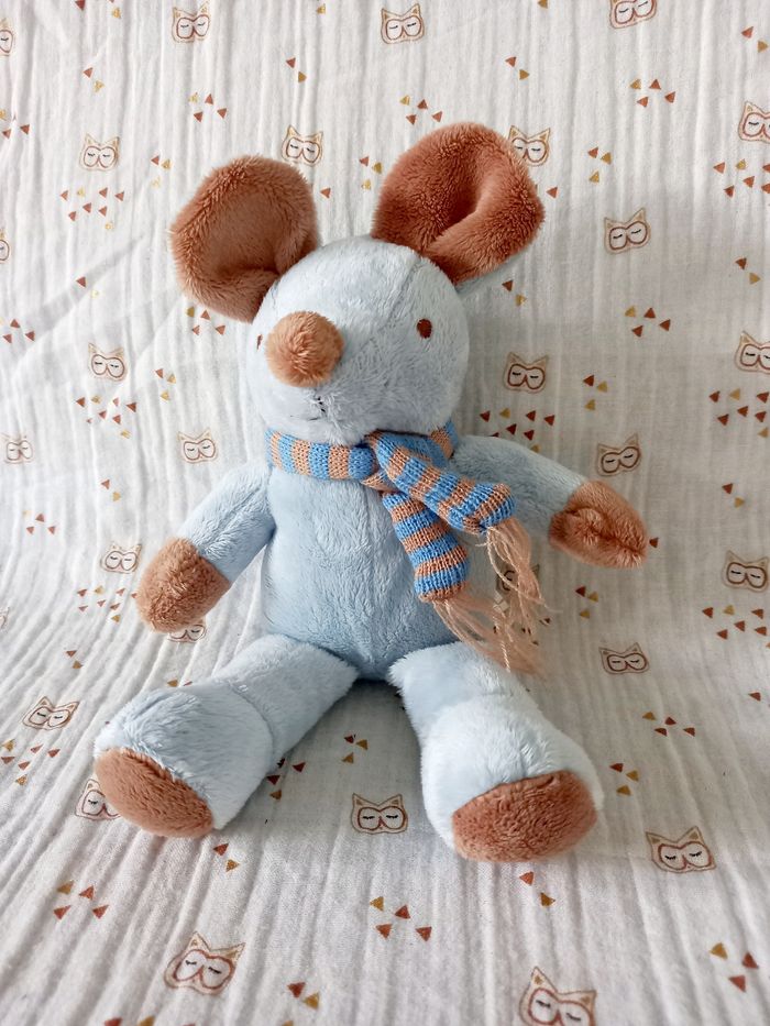 Doudou souris bleu Écharpe Graine d'éveil - photo numéro 1