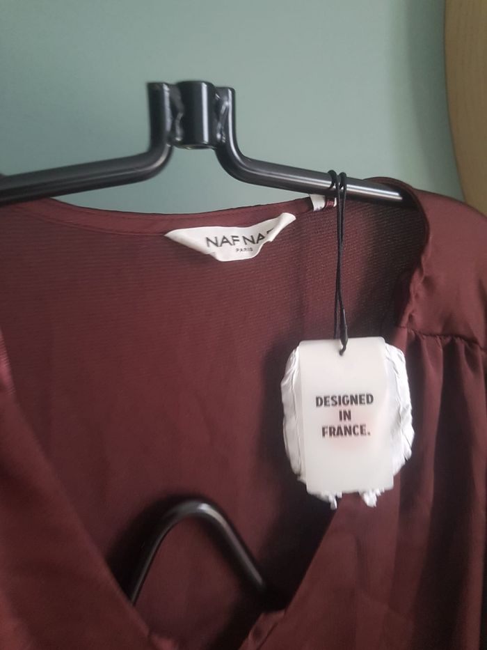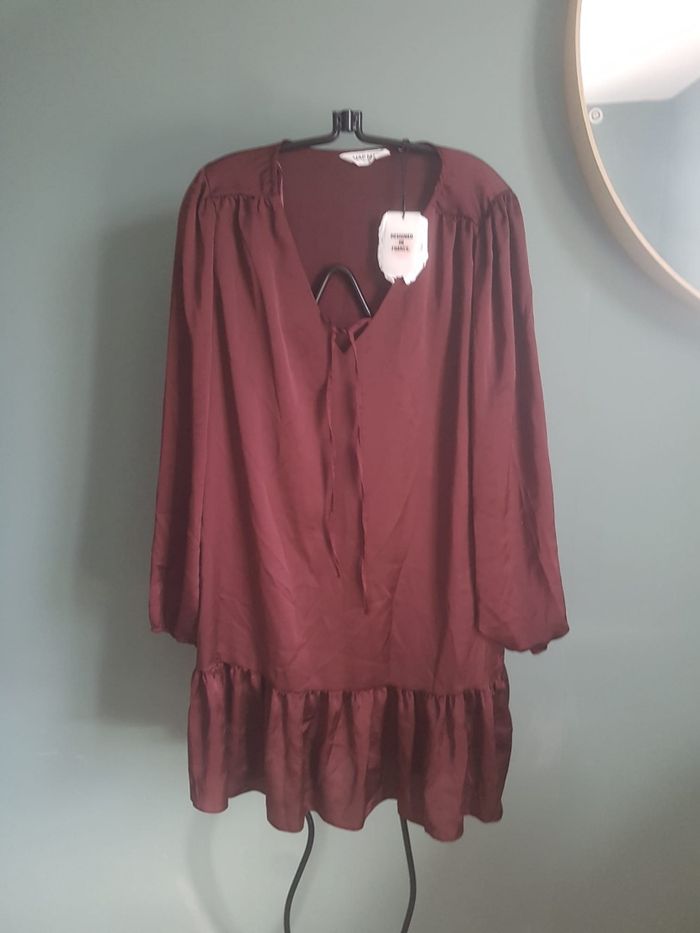 Robe satinée Naf Naf neuve (l'étiquette à prix l'eau car car je l'ai lavé 🙂) Cordon au col Marron mais tire légèrement vers le bordeau Idéal pour les soirées d'été ou évènement 🌸 #nafnaf #robesatinee4042 #robechic #robechic40 #robenafnaf40 #robenafnaf38marron #robenafnafboredeauxnoir