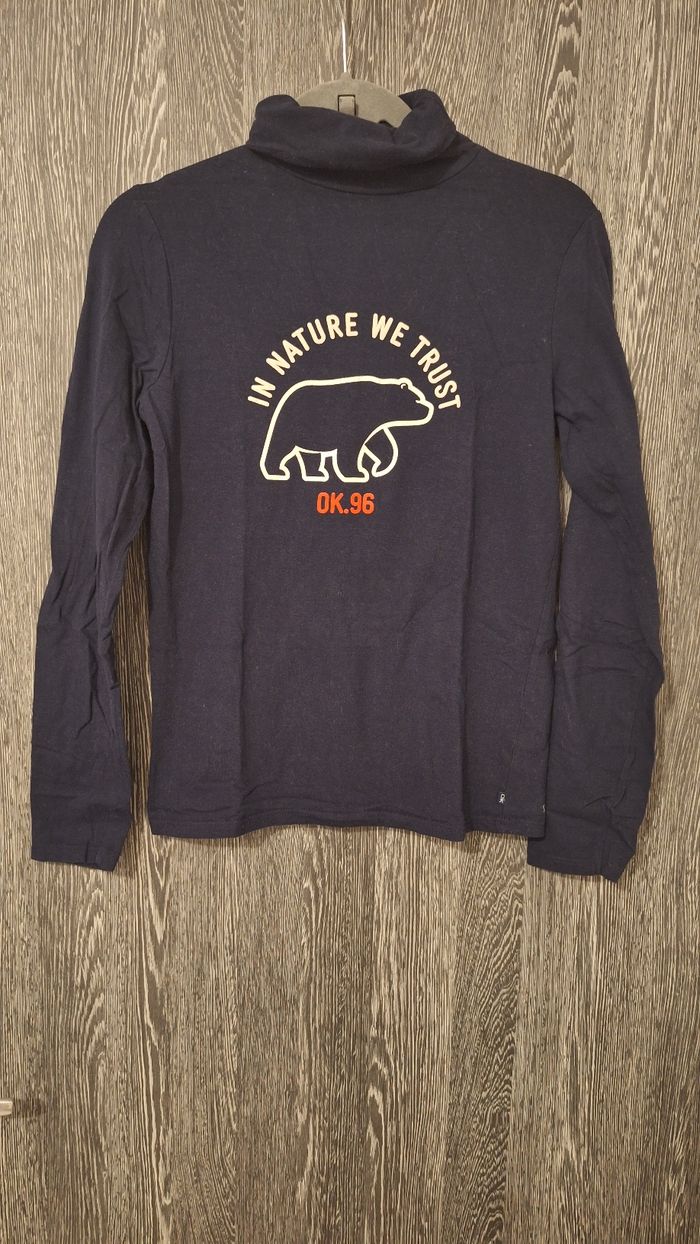 Bonjour ✴️Je vends ce sous-pull en très bon état ✴️De la marque Okaïdi ✴️Taille 14ans 164cm ✴️Bleu Marine avec impression ours blanc ✴️Bord-côtes au niveau de la base et manches extensible ✴️95% coton,5% élasthane