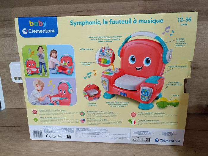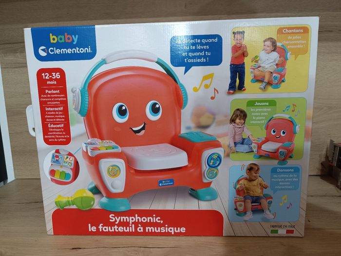 Symphonic le fauteuil a musique Clementoni Neuf jamais sortie de sont emballage. La boîte est cabossée et les scotchs ne tiennent plus mais le contenu est intact