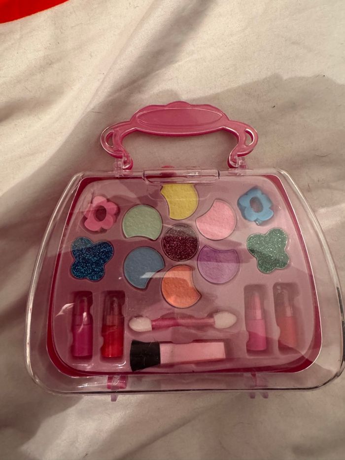 Petite boîte à maquillage enfant Accessoires de maquillage : le jouet cosmétique peut aider à développer la capacité de manipulation de vos enfants. Idéal pour les petites filles Cosmétiques pour filles : également un jouet interactif parent-enfant. Jouet cosmétique: fabriqué en matériau, sûr, sans danger pour la santé, cosmétiques pour filles Outil de maquillage pour filles : pour jouet de simulation, maquillage de fête, cosplay, etc., La boîte est petite: 15cm de long 6,5cm de large 16cm de haut. La boîte est neuve.