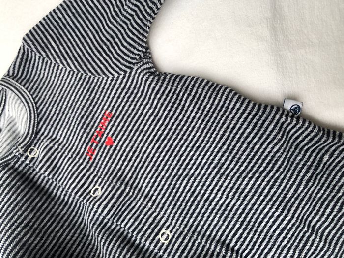 Pyjama hiver, grenouillère, dors bien Petit Bateau, Taille 0 mois/ 50 cm. En velours rayé bleu marine très foncé et gris clair, inscription « je t’aime » en rouge sur l’avant. Mixte. Ouverture intégrale, par pressions, sur tout l’avant et entre les jambes. En excellent état, pas de signe d’utilisation. Le velours est comme neuf. 🌸 Vous aimez cet article ? N’oubliez pas de visiter le reste de mon dressing en filtrant les tailles.