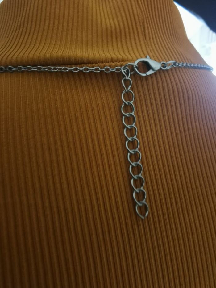 Collier pendentif pierres 7 chakras, en acier argenté chaîne maille forçat et pierres natrelles, en très bon état. Dimensions : Longueur collier (tour) : 46 cm + 4 cm de rallonge Longueur du pendentif pierres : 9 cm Epaisseur chaîne : 2 mm Poids : 8g