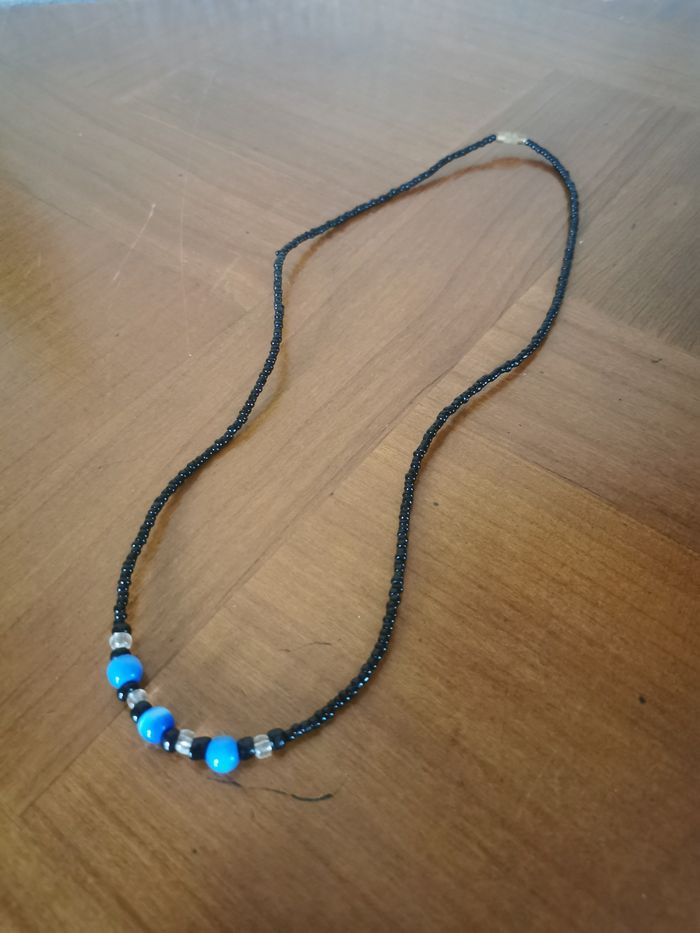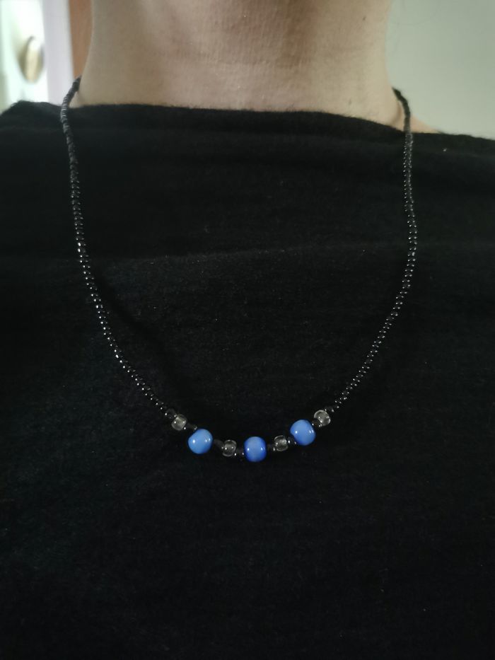 Collier de pèrles noires, transparentes et bleues - photo numéro 1