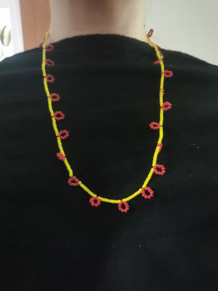 Collier de perles de rocaille jaunes et rouges bordeaux  - photo numéro 4