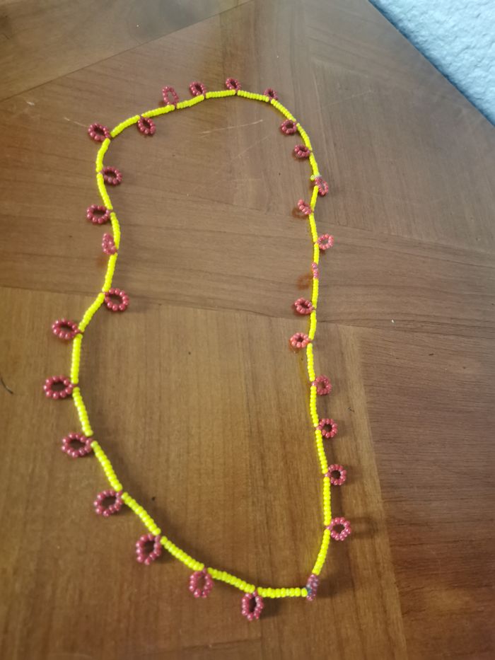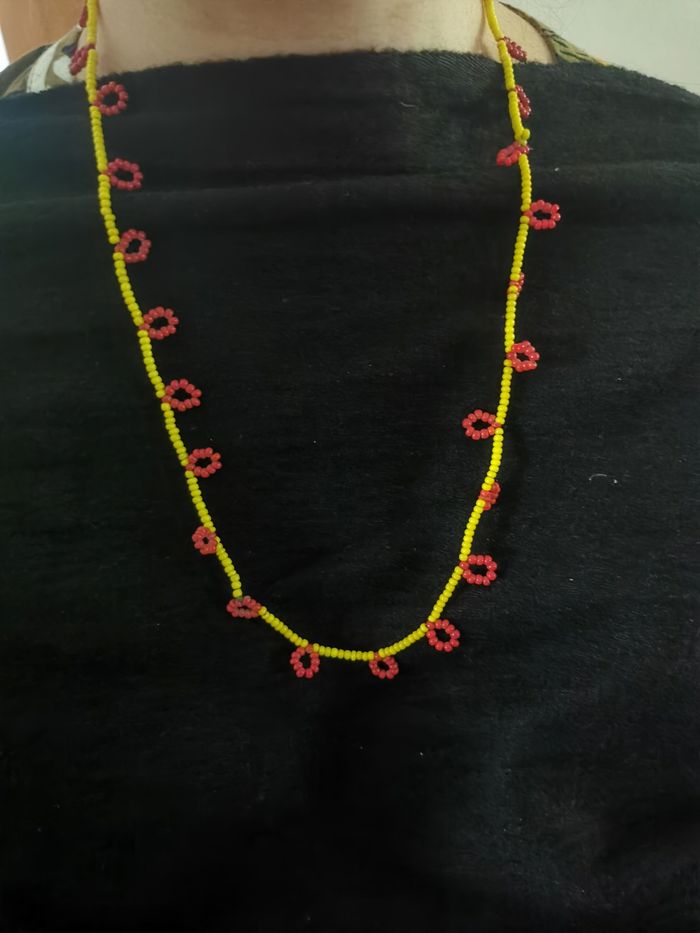 Collier de perles de rocaille jaunes et rouges bordeaux  - photo numéro 1