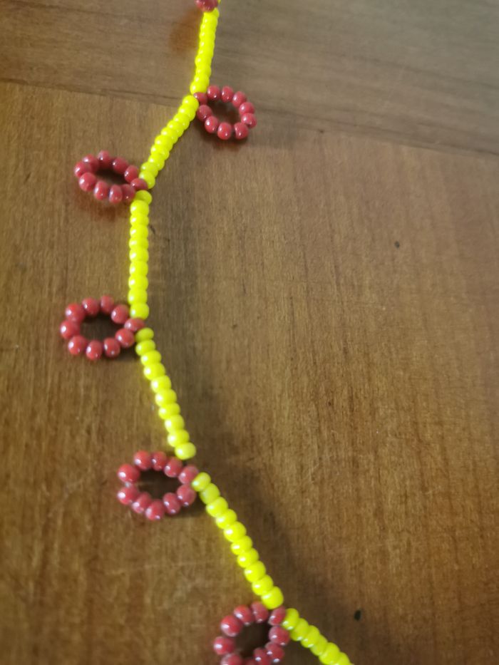 Collier de perles de rocaille jaunes et rouges bordeaux  - photo numéro 5