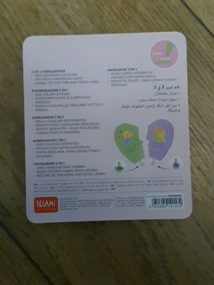 Vends un duo de surligneurs Legami, thème St Valentin 2026 Neuf, jamais utilisé, sous blister Couleur vert et lila