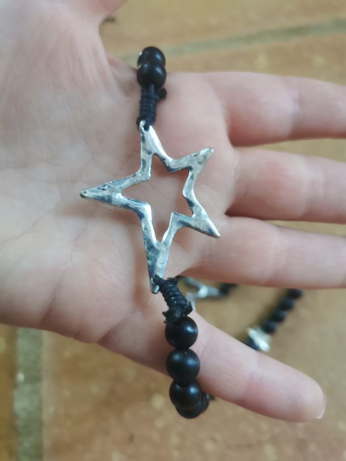 Sautoir vintage de perles noires et étoiles argentées - photo numéro 4