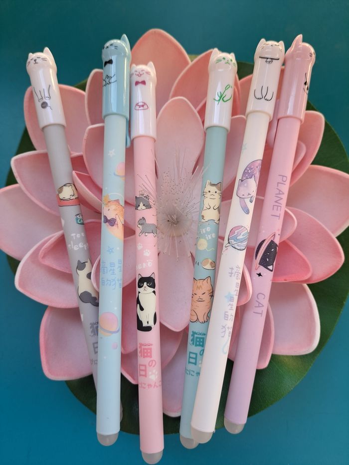 Stylo rigolo gel effaçable chat 🐱 Mine fine Bleu Lot de 6 Neuf Envoi rapide et soigné