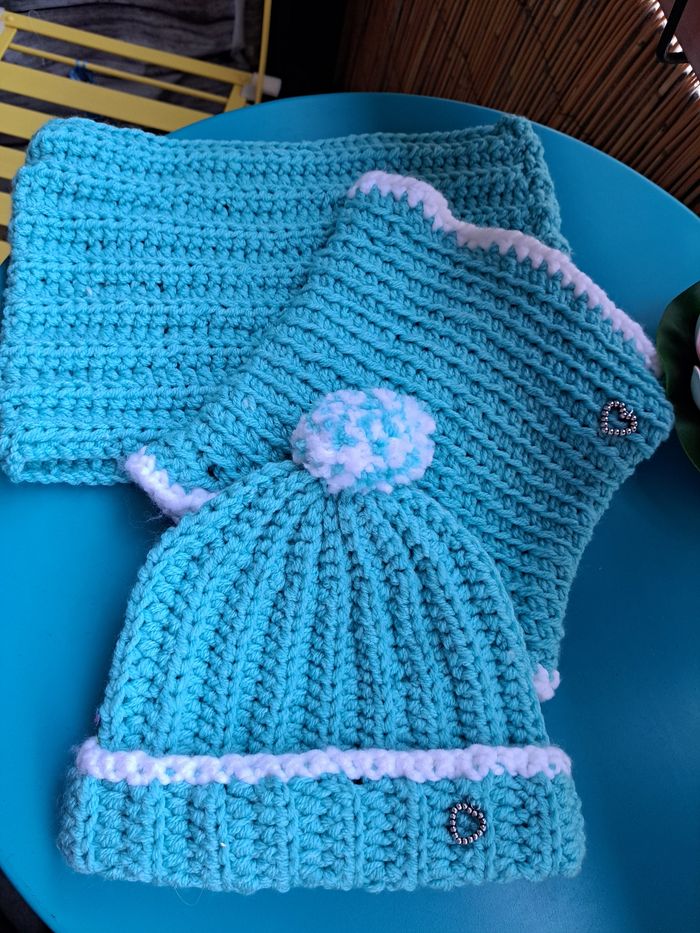 Bonnet et cache cou Bleus Fait main 🩵 - photo numéro 1