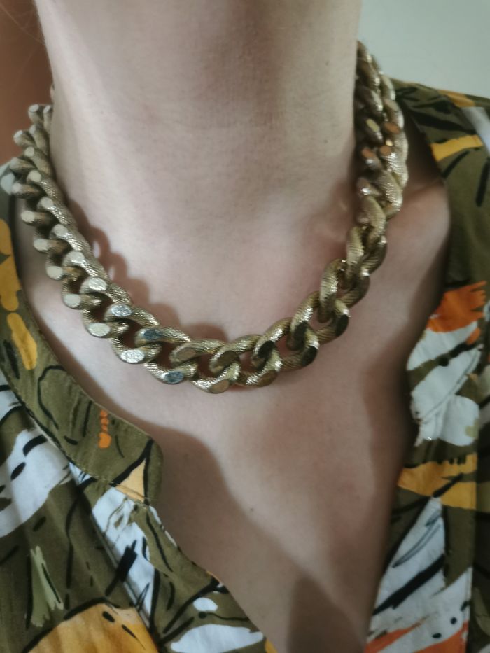 Chaîne collier doré de gros maillons - photo numéro 1