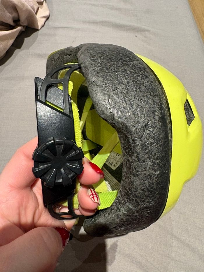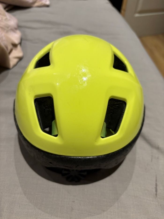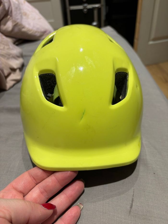 Bonjour bonsoir Je vend ce casque à vélo pour enfant Couleur jaune fluo Réglable au niveau du tour de tête et au niveau de l’attache En très bon état voir photo Envoie rapide et soigné