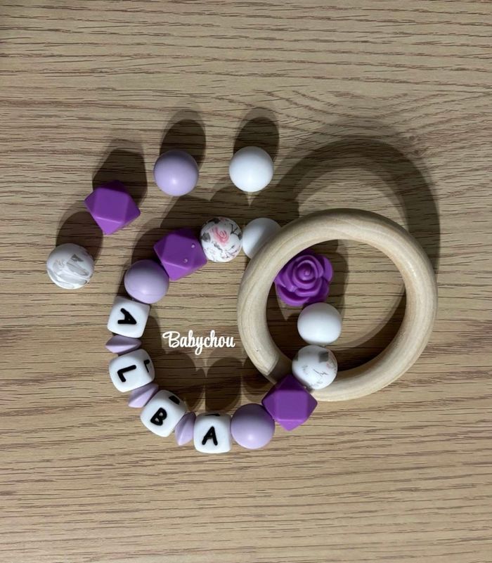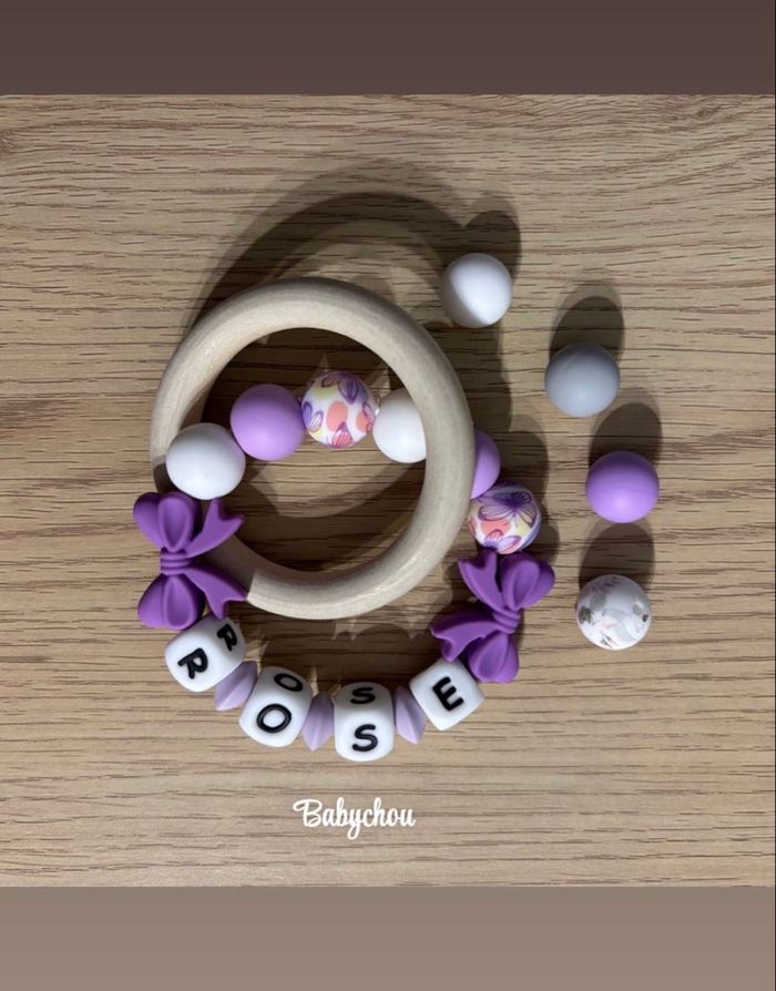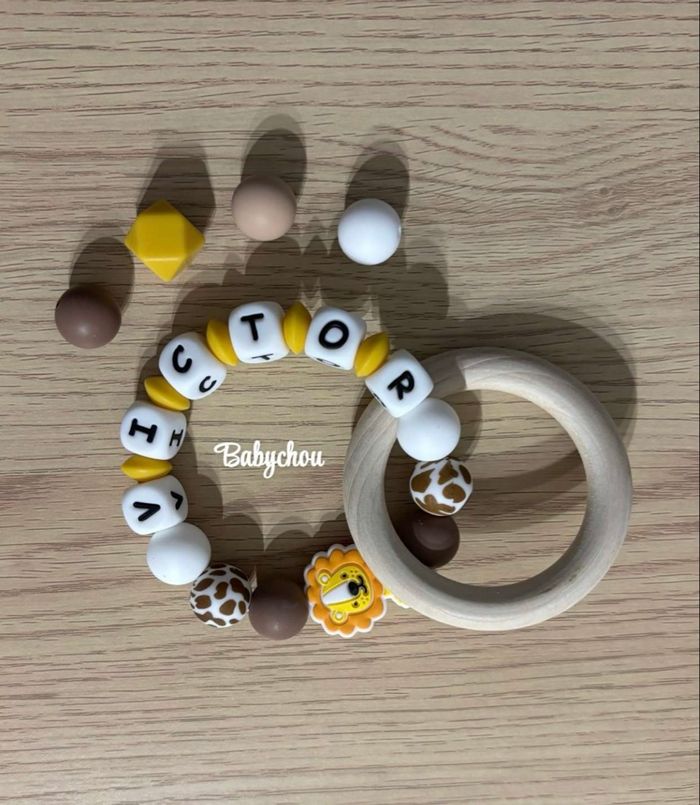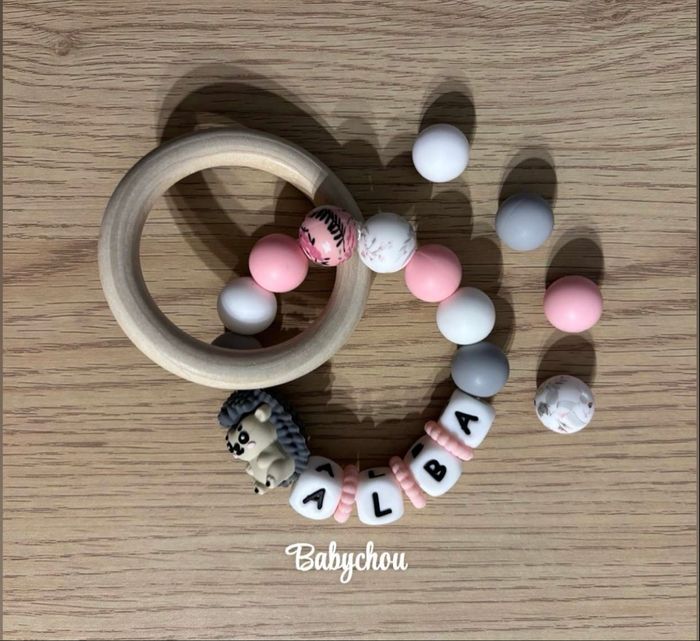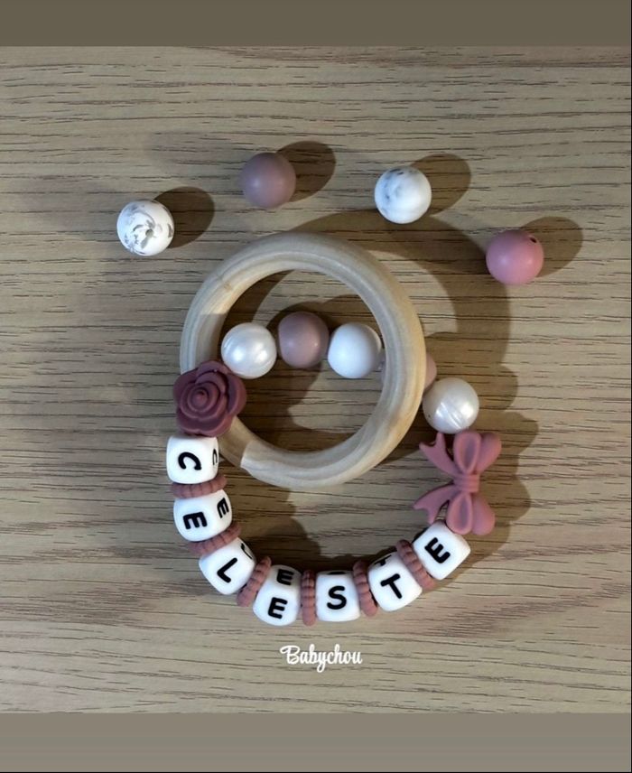 🌼 Bonjour, pour les anneaux de dentition ils sont à 13€ l’unité avec un seul anneau en bois, aux normes européennes (car oui il faut faire très attention surtout à cela, vous avez un doute, un mauvais pressentiment, n’achetez pas !) Pour la personnalisation il me faut : • Le prénom 🧸 • ⁠Les couleurs souhaitées ✨ • ⁠Les perles souhaitées ✨ • ⁠Le clips souhaités ✨ • ⁠Si vous avez déjà un modèle en photo, hésitez pas à me l’envoyer je m’y rapprocherais le plus possible et/ou je ferais le même si le stock me le permet. ✨
