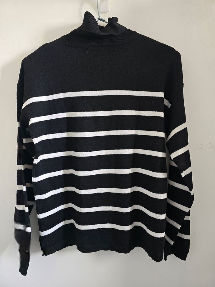 📌 Pull Col Roulé Rayé Noir et Blanc - photo numéro 2