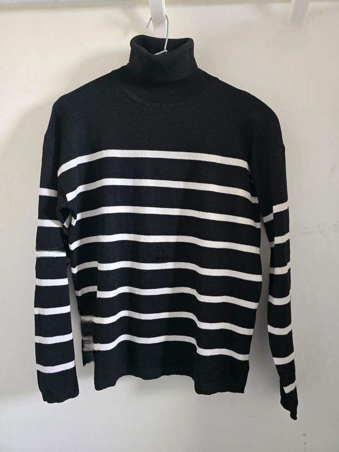 📌 Pull Col Roulé Rayé Noir et Blanc - photo numéro 1