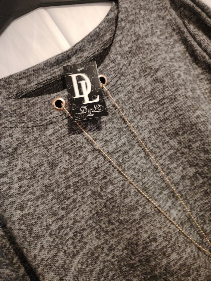 Tunique grande taille Taille unique 42/52 Neuve avec sautoir intégré qui s'enlève Plus long derrière que devant Top qualité France Gris chiné