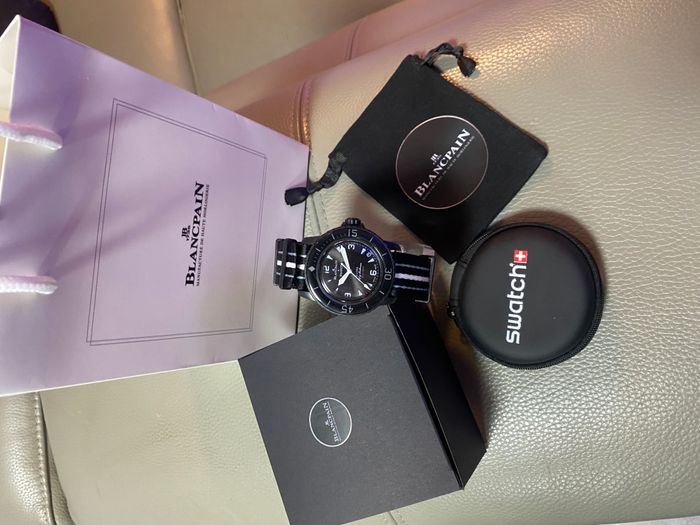 Montre Blancpain x Swatch Neuve, jamais portée. Vendue avec les sacs et les boîtes visibles sur les photos
